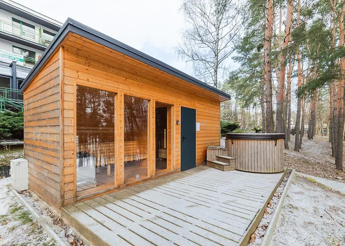 The 30 m^2 Apartament Zegrzynski Z Widokiem Serock is approximately 10 minutes' drive from Church of the Annunciation in Serock and provides spa facilities such as a sauna. The apartment entices guests with a sauna, ensuring ultimate comfort by the swimming pool.